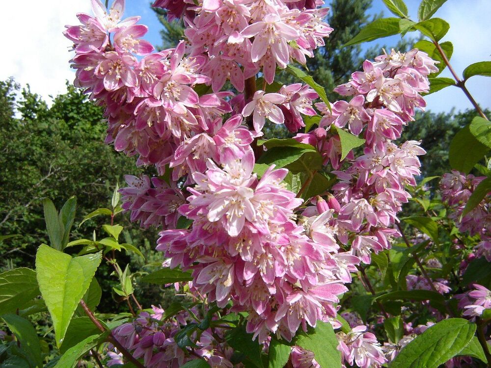 Дейция розовая "Распберри Сандей" (Raspberry Sundae) – это изысканный декоративный кустарник, который станет настоящим украшением вашего сада. Этот сорт отличается обильным и продолжительным цветением, привлекая внимание своими нежными розовыми цветками, собранными в изящные соцветия.