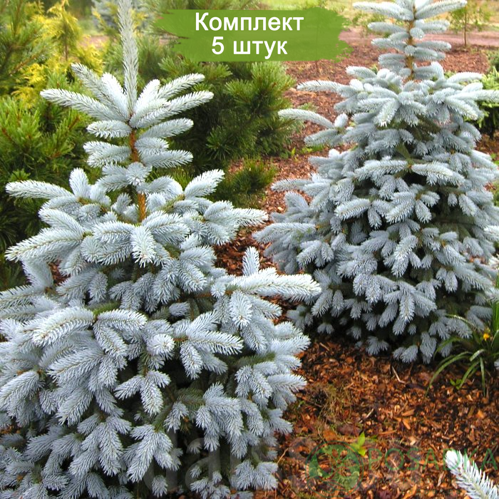 Приобретите комплект из 5 саженцев Ели Голубой Глаука, чтобы добавить в ваш сад уникальное сине-серебристое украшение! Эти саженцы, высотой от 60 до 100 см, идеально подходят для создания живописных ландшафтов, живых изгородей или как солитерные растения.