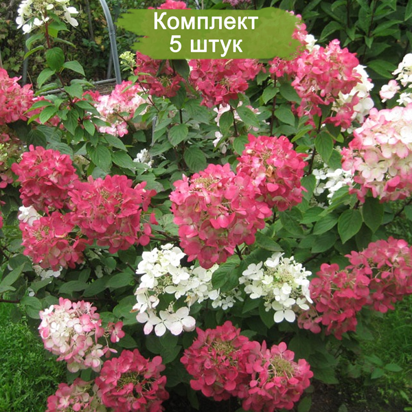 В комплекте 5 саженцев, готовых к посадке. Добавьте в свой сад нотку элегантности и яркости с гортензией метельчатой Даймонд Руж!